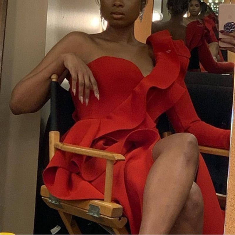 Elegant Asymmetrical Off-Shoulder Ruffled Formal Maxi Dress