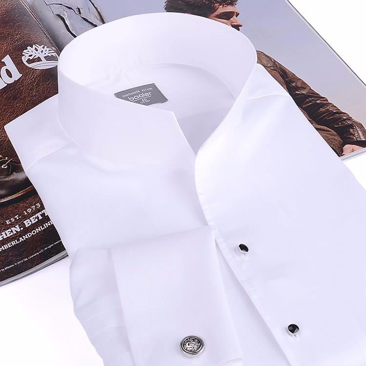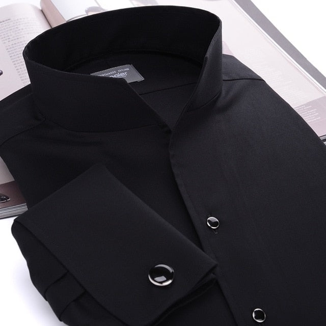 Stay dapper in this Men's cotton shirt with French cuffs. Available in white, black and blue.