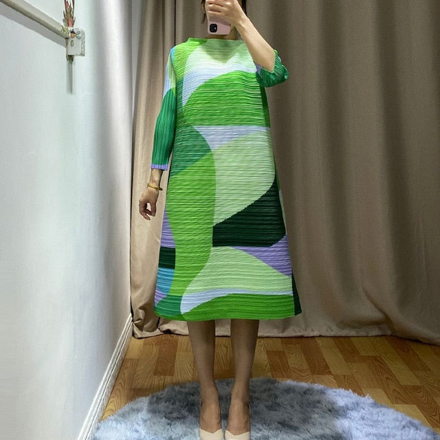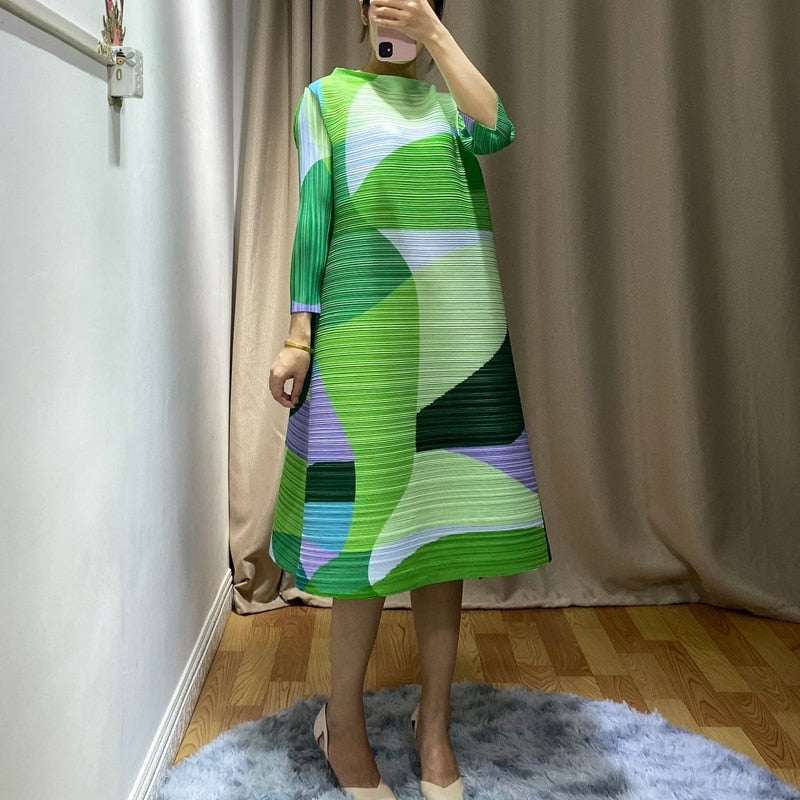 This geometric print dress with 3/4 length sleeves is a great way to wear pattern and the ultimate go-to outfit.
