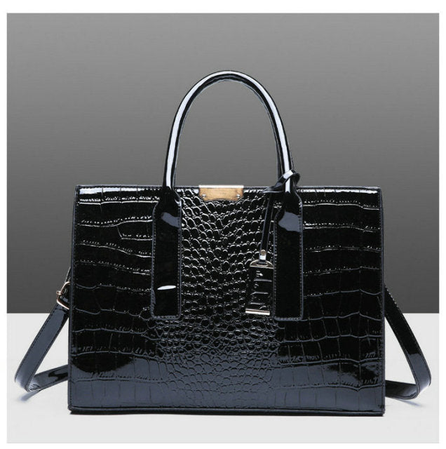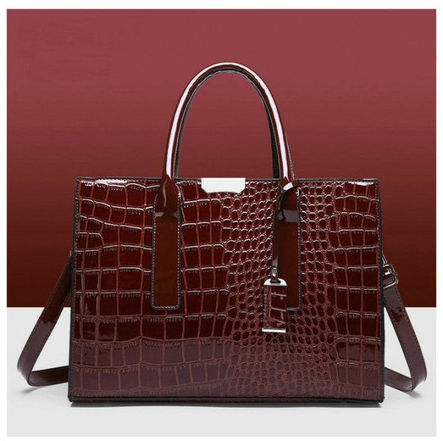 - Purse features a top handle (approx 5"H) for easy carrying, also includes a detachable shoulder strap and gold tone feet.